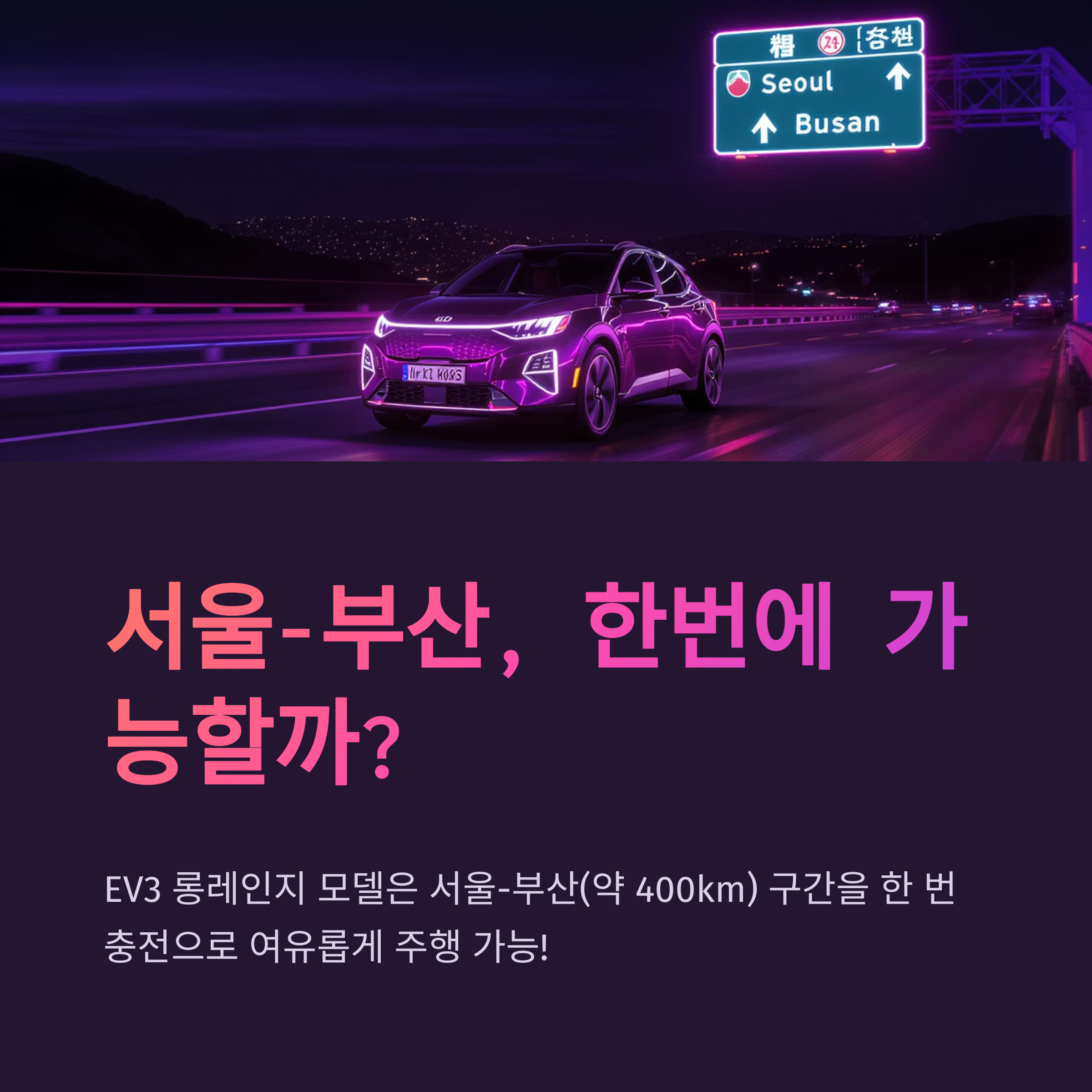 Q2. EV3 롱레인지 모델은 한 번 충전으로 서울에서 부산까지 갈 수 있나요?