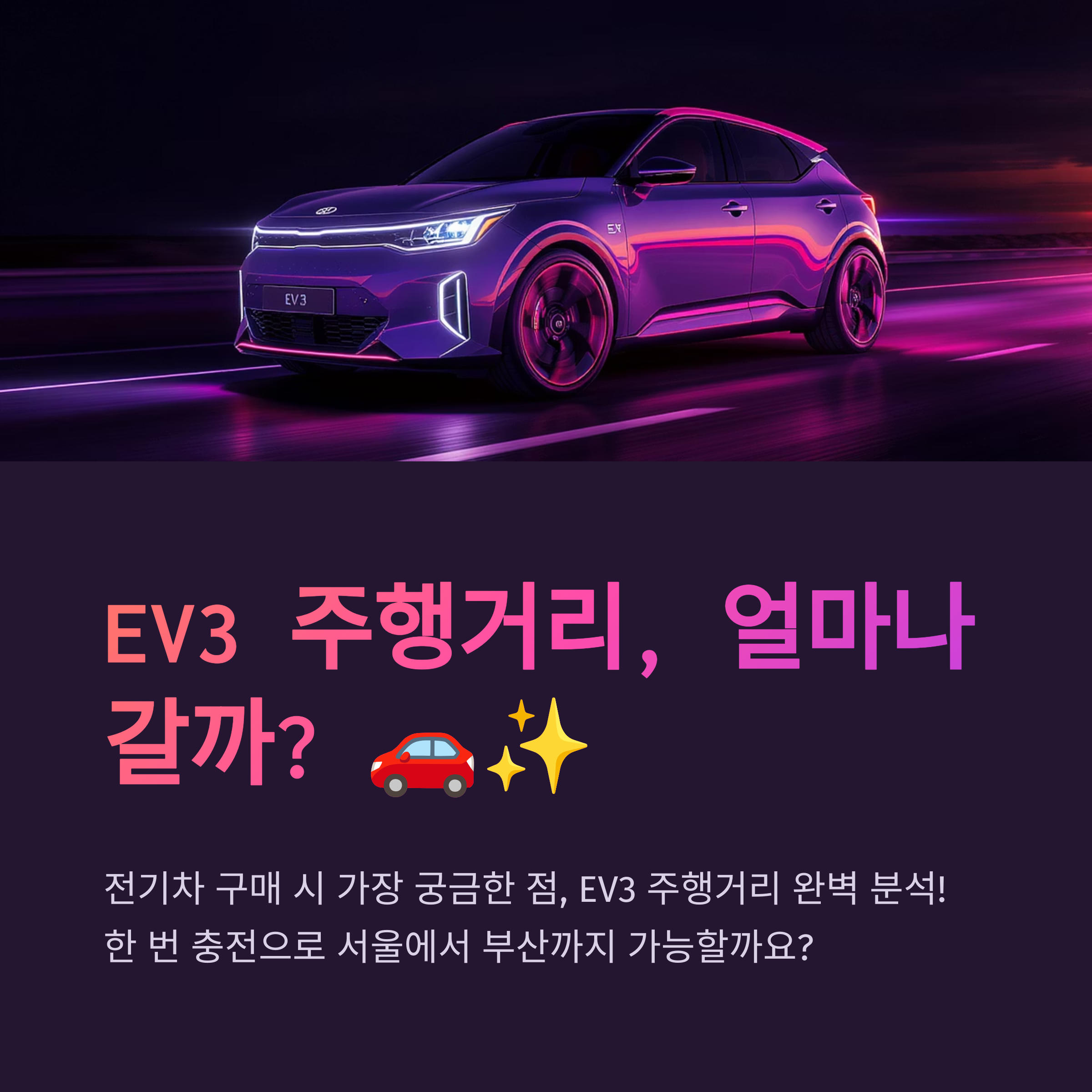 저도 처음엔 정말 궁금했거든요! 과연 EV3는 한 번 충전으로 얼마나 멀리 갈 수 있을지, 실제 주행에서는 어떤지, 그리고 다른 전기차들과 비교하면 어떨지, 이 모든 궁금증을 시원하게 해결해 드릴게요.